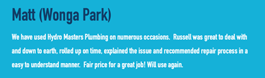 Some of the suburbs that Hydro Masters Plumbing has worked in: