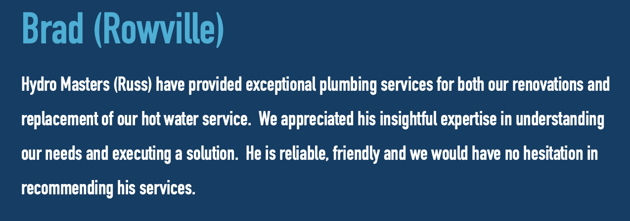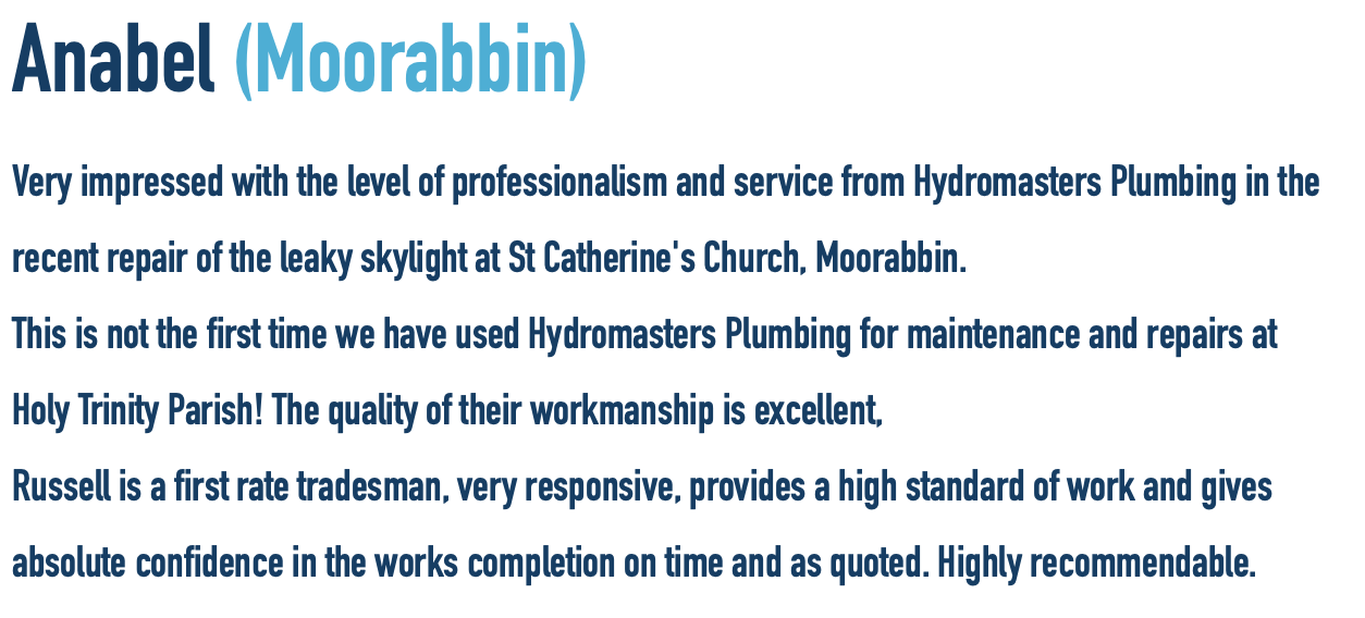 Some of the suburbs that Hydro Masters Plumbing has worked in: